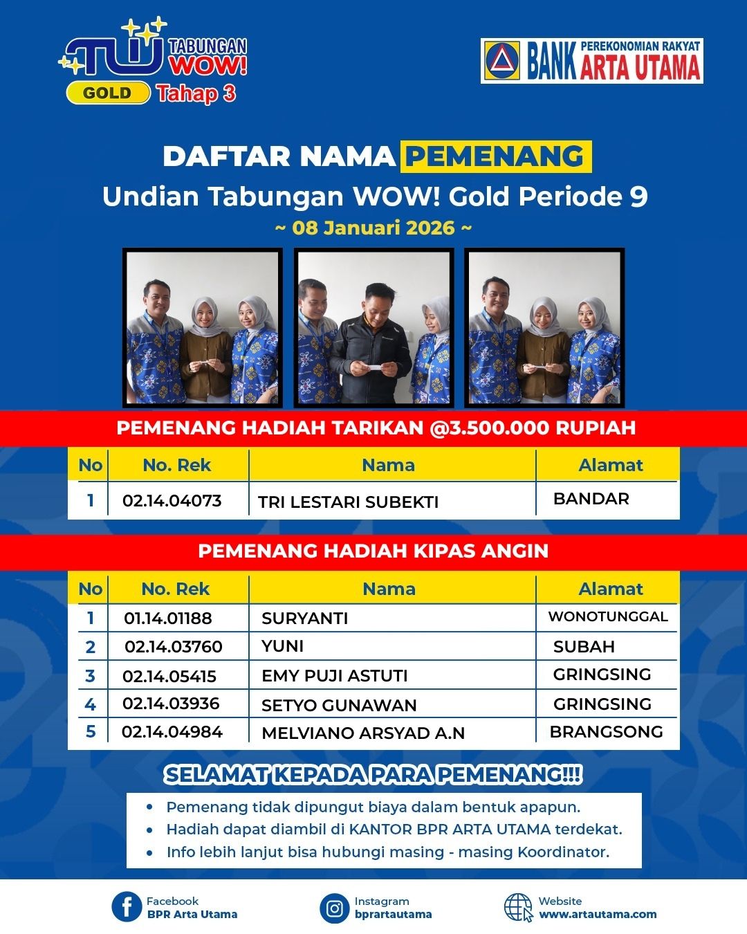 BPR ARTA UTAMA Kembali Pertahankan Predikat Kinerja Sangat Bagus Selama 7 Tahun Berturut-turut.
