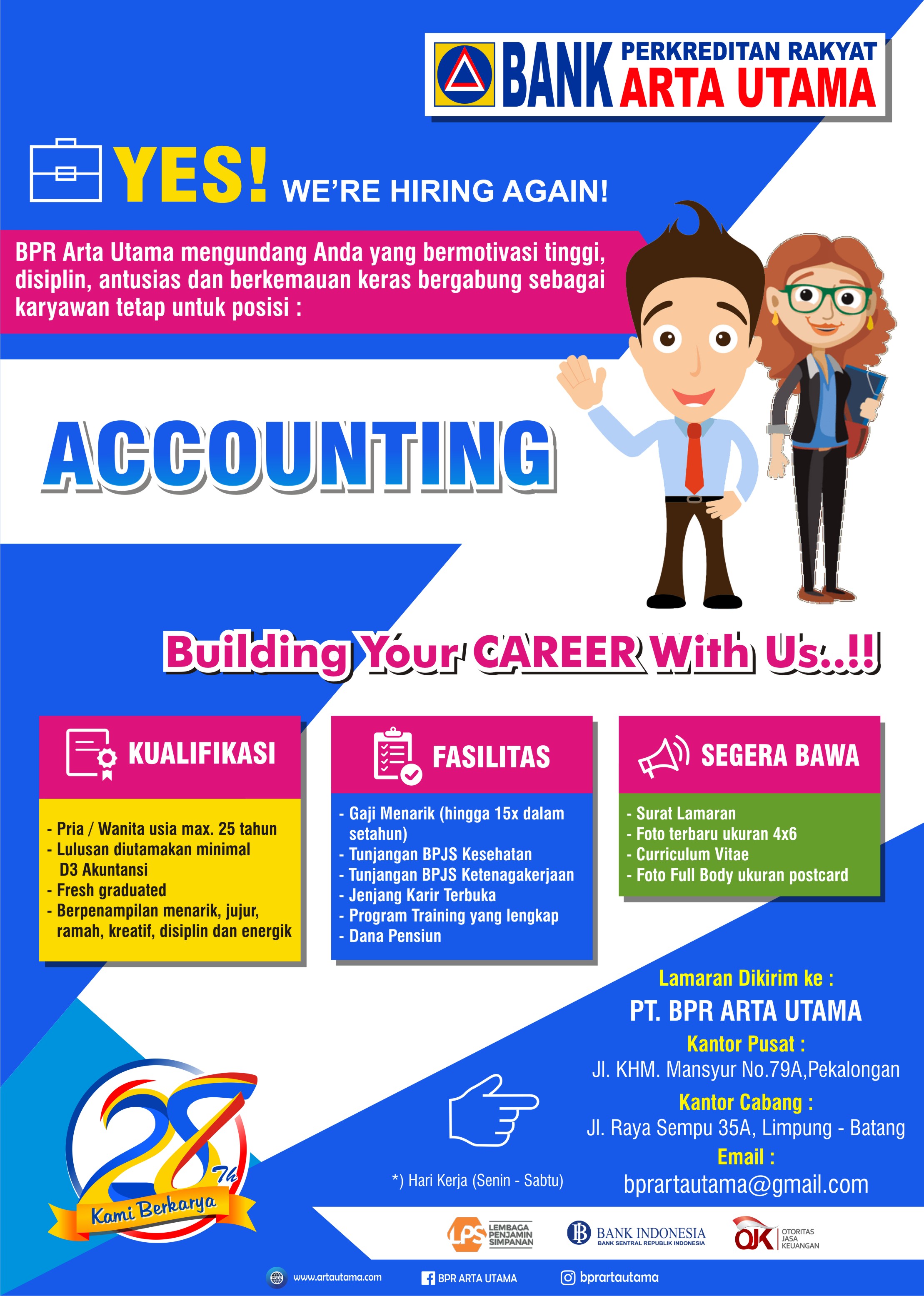 Penempatan : Semua Kantor BPR Arta Utama  ||  Open Tanggal : 18 Januari 2020   ||   Tutup Tanggal : 31 Januari 2020